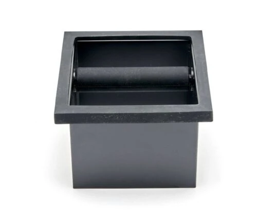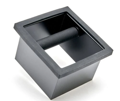 The knock bar is welded to the sides which not only makes it secure but reinforces the structure making the Rhinowares Coffee knock chute the “toughest” on the market! The replacement rubber sleeve helps protect your porta filter and reduce noise.