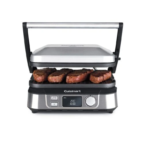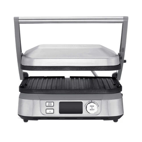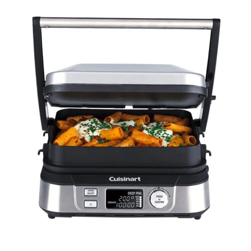 This 5-in-1 grill offers ultimate cooking versatility. Prepare perfectly seared steak, mouth-watering hamburgers, easy stir-fries, golden pancakes, or even bake a cake using the adjustable temperature control. With removable reversible plates and a deep pan thatβs easy to clean, thereβs almost nothing you canβt cook.