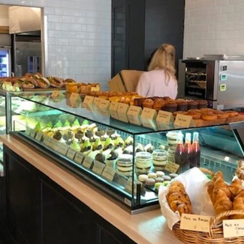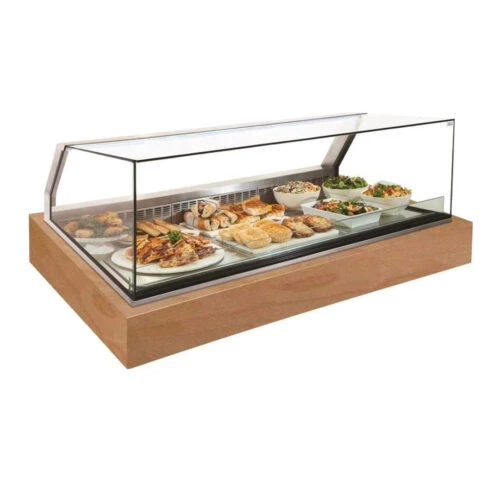 This architecturally designed frameless cabinet is ideal for high-end patisserie or delicatessen style displays.  Designed to drop into a counter so that the base of the glass canopy sits flush with the bench-top (4°C operating temperature)