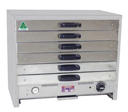 Finished in silver hammertone on a steel body, all units have thermostat control, thermometer and removable crumb trays. Model 80DT has removable drawers with stainless steel fronts and are designed for pies, pastries and sausage rolls.