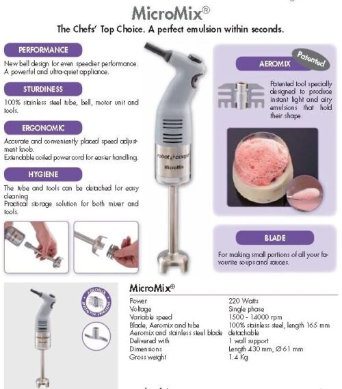 ROBOT COUPE 165mm Handheld Power Mixer 5L – MicroMix