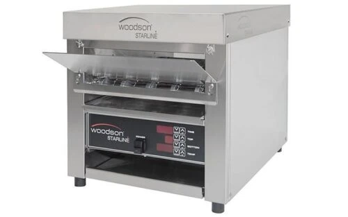 Front loading and front exiting conveyor toaster ideal for hamburger buns with 356mm belt widthÂ