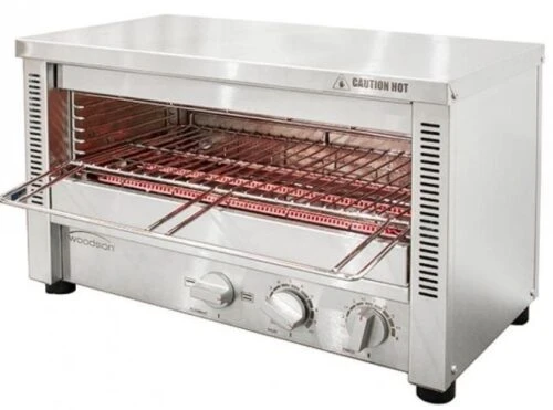 Utilising energy efficient ‘instant’ heat infrared glass elements situated both on the top and bottom of the unit, the Woodson Multi-Function Glass Element Toaster Griller with eight slice capacity, delivers power and durability. With multiple position slides and racks for safe loading, and an easy to clean removable crumb tray, this unit is adaptable and flexible while still ensuring reliable performance. Offering fast, exceptionally even grilling and toasting, this infrared toaster griller is an asset to any quick service kitchen
